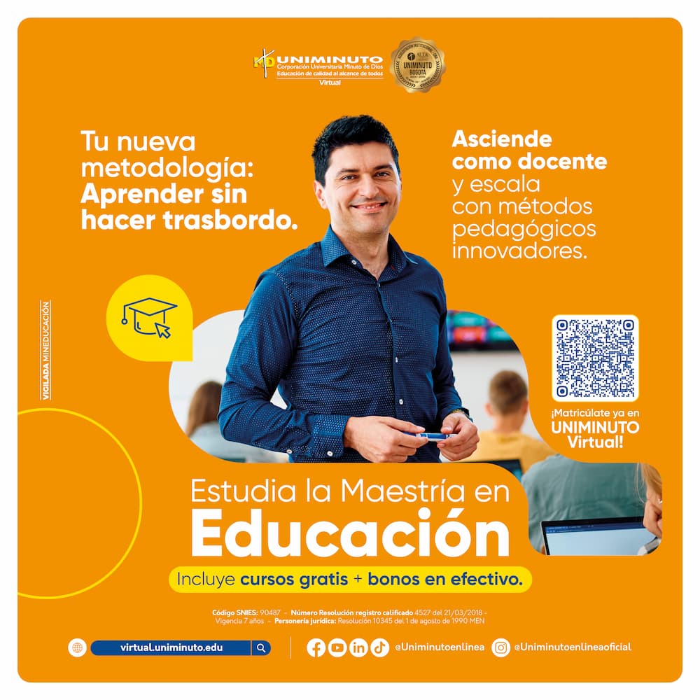 La Maestría en Educación de UNIMINUTO forma docentes de calidad con alto compromiso social y ético, capaces de transformar vidas y comunidades a través de la innovación, el reconocimiento de los nuevos modelos pedagógicos y curriculares. Docentes que analizan las diferentes concepciones sobre la evaluación educativa y su aplicación en el escenario escolar y académico. Se encuentra articulada con ofertas formativas y procesos investigativos de organizaciones e instituciones internacionales.